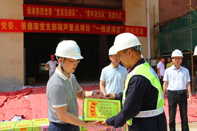 此次活動也是綠港集團黨委在今年開展“四個一線”爭先鋒、創(chuàng)建黨建示范品牌工作以來,在項目建設一線開展創(chuàng)建“黨員攻堅先鋒隊”活動的重要舉措之一?!八膫€一線”是綠港集團黨委圍繞經(jīng)開區(qū)黨工委加強基層黨建三年行動計劃,結(jié)合集團公司項目建設、企業(yè)服務、招商銷售、項目融資的四個任務,以“抓黨建促發(fā)展,抓品牌促提升”為主題,組織號召廣大黨團員積極開展在項目一線創(chuàng)建“黨員攻堅先鋒隊”、在服務企業(yè)一線創(chuàng)建“服務示范標兵(窗口)”、在招商銷售一線創(chuàng)建“一個黨員一面旗,我為綠港做代言”、在項目融資一線“爭做黨員領頭雁”的活動。活動開展以來,集團黨建真正實現(xiàn)了“走前頭、作表率”的目標,引導集團公司全體黨員干部轉(zhuǎn)變工作作風、提高工作效能、強化服務意識,在促進綠港集團樹立國企黨建標桿,不斷提升社會形象起到引領作用。授旗儀式結(jié)束后,綠港集團與會領導還給項目一線參建人員送上了王老吉、西瓜水果等清涼慰問品,鼓勵他們繼續(xù)發(fā)揚綠港鐵軍精神,急難險重顯身手,同時要注意防暑降溫、保重身體,更好地為項目建設做貢獻。(綠港集團 陽正輝、張彩秀/文、圖)